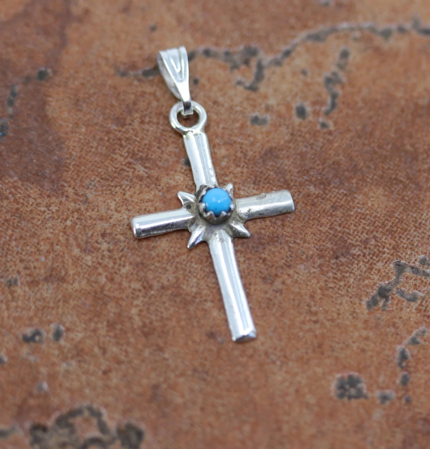 Sterling Silver Zuni Turquoise Cross Pendant