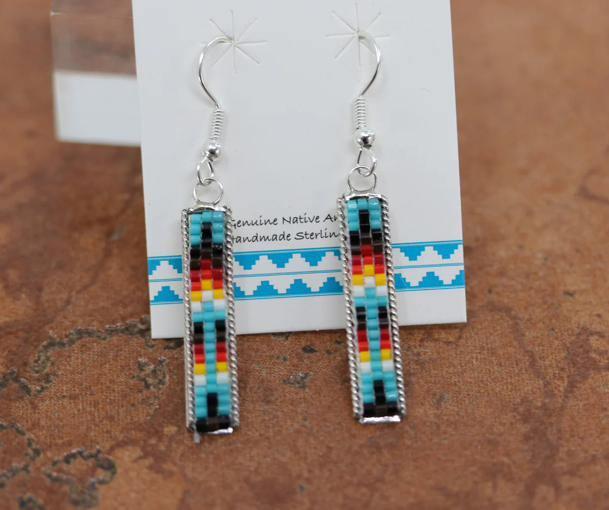 Sterling Silver Navajo Blue Beaded Earrings