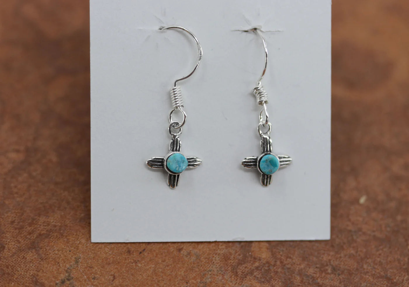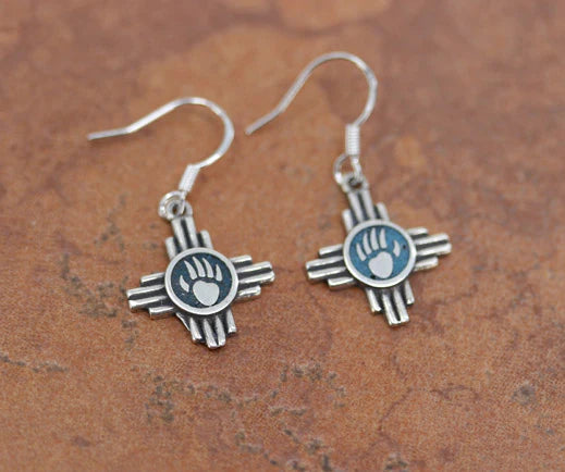 Sterling Silver Turquoise Bear Paw Zia Earrings