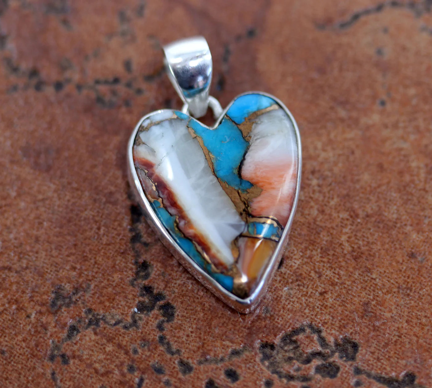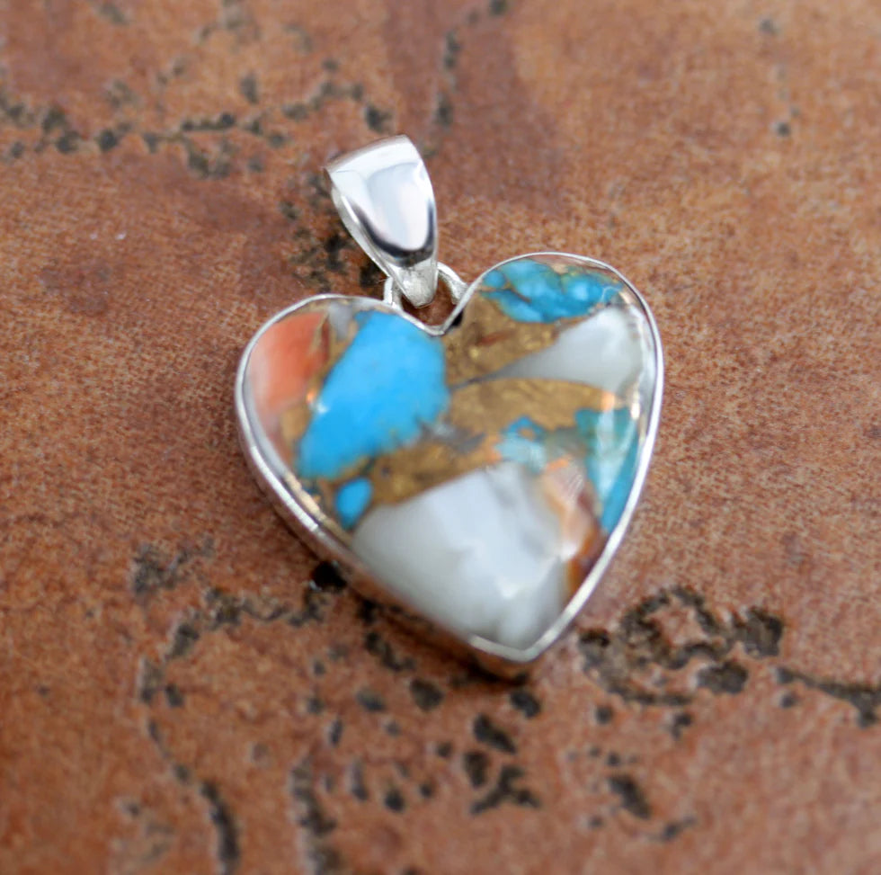 Silver Peacock Dahlia Turquoise Heart Pendant