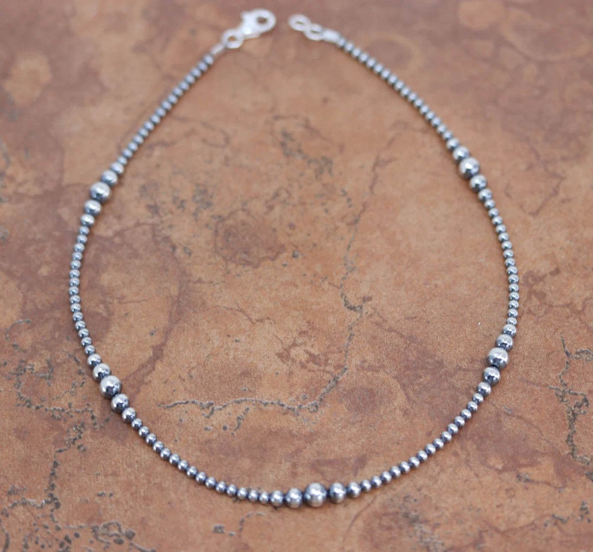 24" 4 mm Sterling SIlver Navajo Pearl Beaded Necklace