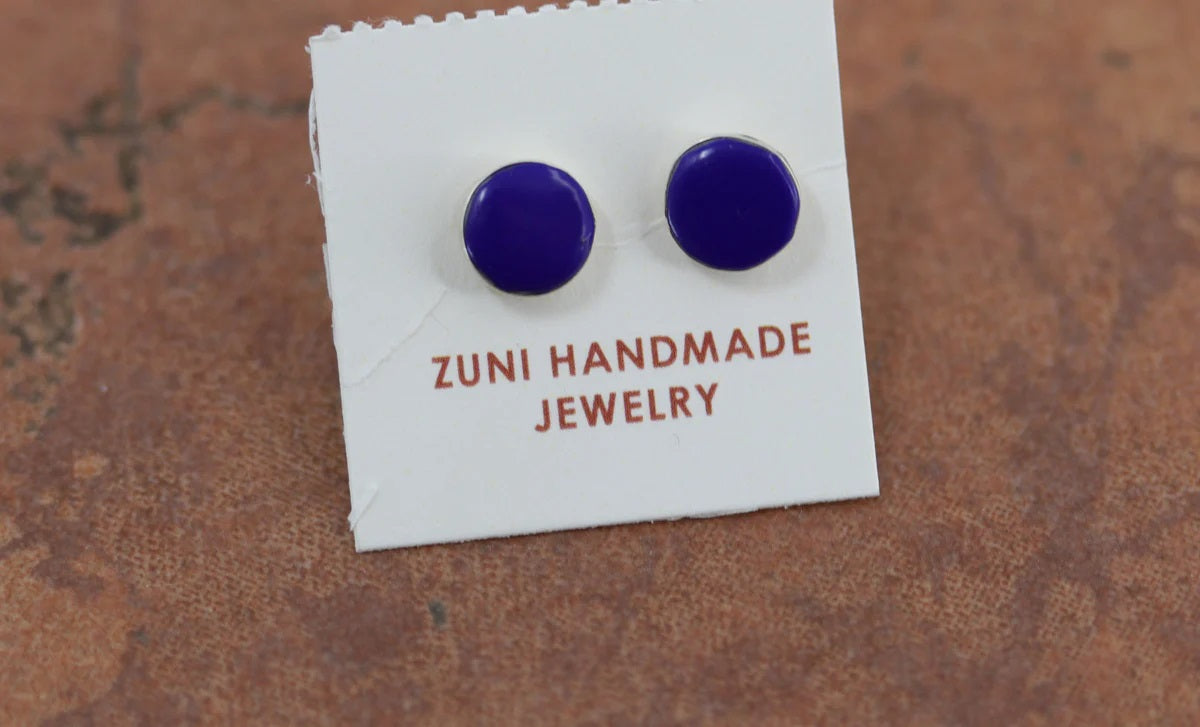 Beautiful earrings made from sterling silver and lapis. They are about 3/16" in diameter.